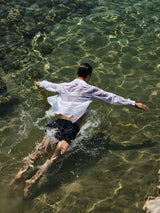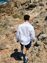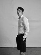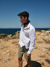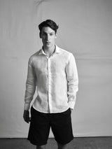 Long sleeve white linen shirt made with lightweight Belgian-French linen and woven in Greece.