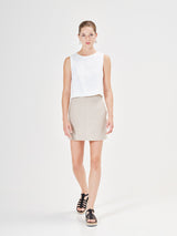 Highwaisted A-line skirt with corozo buttons to close! Designed to be worn with crop tops like our strapless top (coming soon!) and our Daphne top or new Elon top. White is lined but the flax is not.