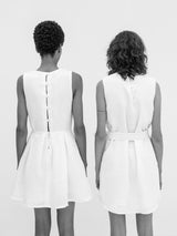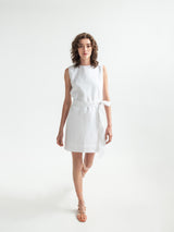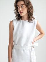 Sleeveless linen shift dress that can be belted or worn on its own. Corozo buttons at the back with two side patch pockets for added fun. The linen is pre-washed and dried. Our garments are always lined.