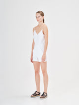 For all your errand-running needs in! The Penelope jumpsuit wears like a dream. Fitted but brunch friendly. It has spaghetti straps, a v-back, pockets and corozo buttons to close. It is unlined.